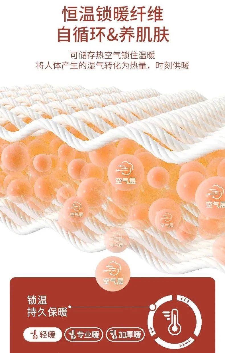 穿上后很快就能觉得暖暖的,而且不易流失热量,因此比普通的保暖内衣都要暖和得多。